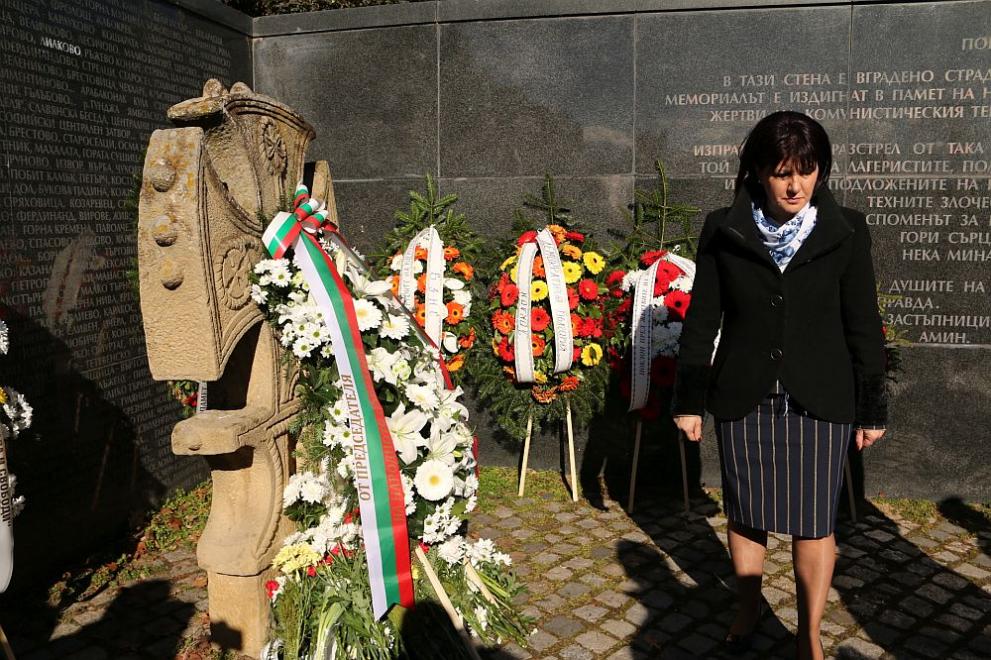 Председателят на Народното събрание Цвета Караянчева и народни представители участваха на церемонията по отдаване на респект на жертвите на комунистическия режим пред параклиса и мемориалната стена до НДК.