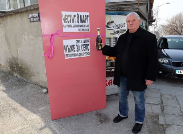 Председателят на партията на българските мъже Росен Марков показа сексмашина за празника на дамите.