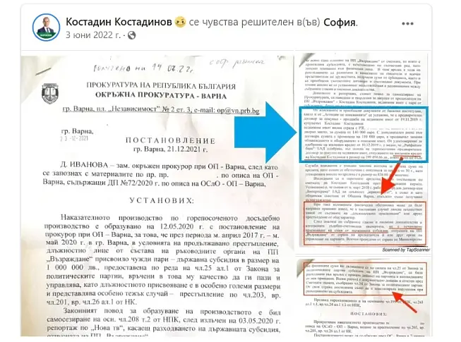 Маркираното в наследник цвят в двете факсимилета е от BIRD.bg. В червен е маркираното от истинската обява на Костадинов във Facebook.