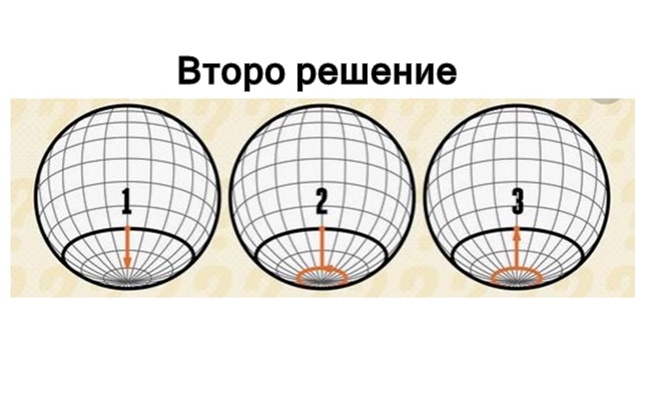 Ако окръжността има обиколка 1/3 миля, още веднъж можем да вървим една миля на север от нея, което ще бъде на юг, да я обиколим три пъти, вървейки една миля на запад и да се върнем там, откъдето сме тръгнали, като извървим една миля на север.