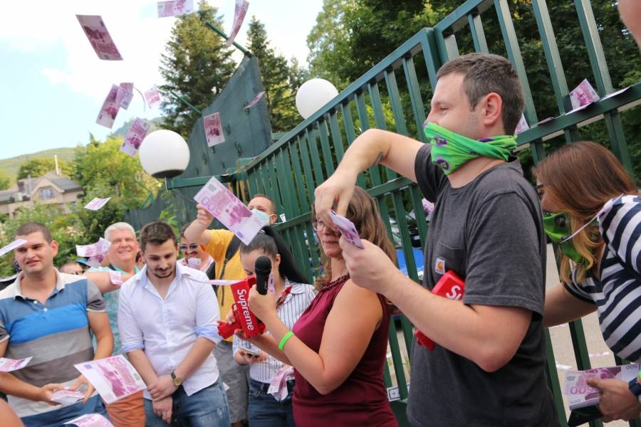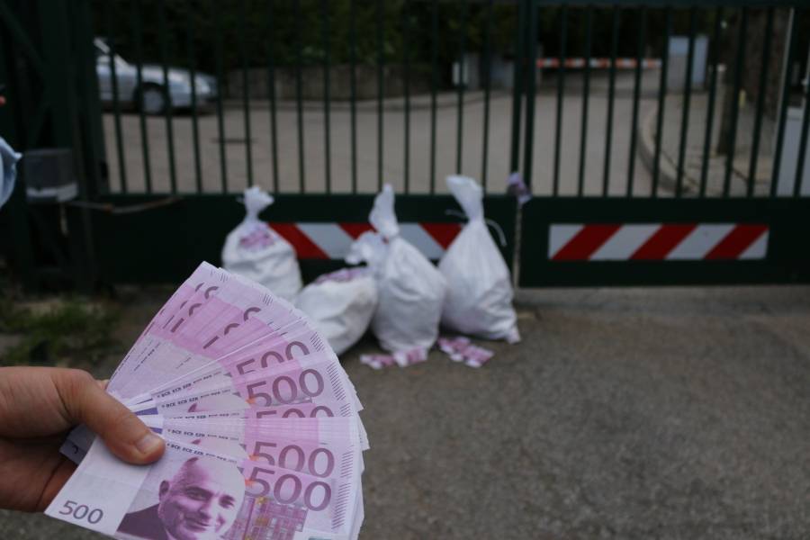 От младежката организация на „ Да, България! ” са донесли и няколко чувала с евровибанкноти, илюстрирани с лика на премиера Бойко Борисов. Банкнотите са от по 500 евро, а протестиращите обявиха, че желаят да видят дали могат да ги внесат вътре посредством НСО - по този начин, както по думите им са импортирани и банкнотите от фотосите от нощното шкафче на премиера.