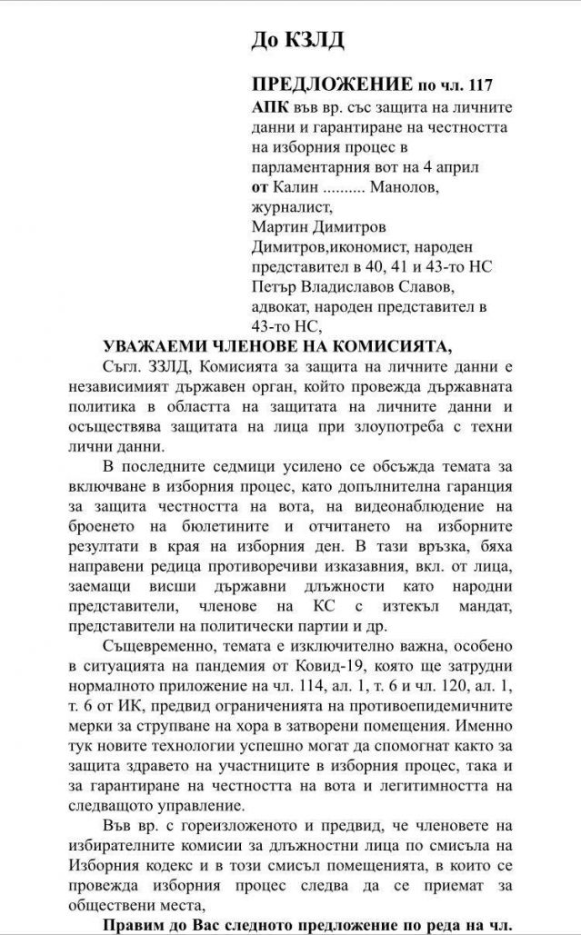 Ето за какво и очевидно предусещайки следващите " трикове " на управниците ни, още предходната седмица попитахме способния държавен орган - Комисия за отбрана на личнните данни, дали би зародил риск при опазването на персоналните данни на участниците в изборния развой хора, в случай че: