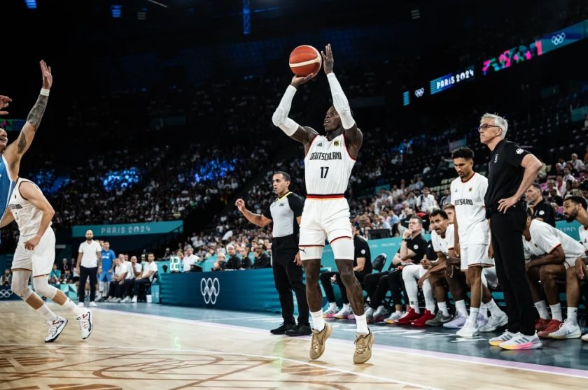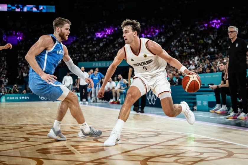 Представителният отбор на Германия се трансформира в първия полуфиналист на олимпийския шампионат при мъжете на Игрите в Париж. Действащите международни първенци отхвърлиха Гърция със 76:63 в първия четвъртфинален мач. В „ Арена Берси “ баскетболистите на Гордън Хърбърт позволиха известни съмнения през първото полувреме, само че в хода на второто нанесоха своя удар и стегнаха куфарите на играчите, водени от Василис Спанулис. За Бундестима това бе четвърти пореден триумф, което го прави непобеден във френската столица.