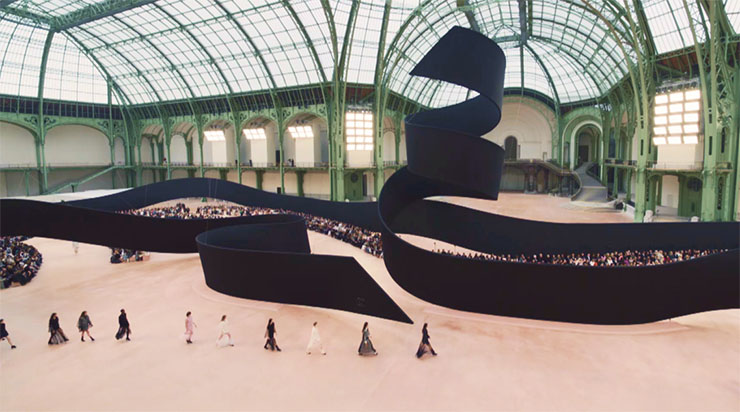 Представянето на сбирката на Chanel за сезон есен/зима 2025 бе дълго чаканата кулминационна точка на Седмицата на модата в Париж.Под стъкления покрив на Grand Palais сценографът Уило Перон бе извисил една гигантска черна панделка като колосален декор, към който седяха гостите и минаваха моделите. Впечатляващо за гледане и провокиращо естетичните сетива.