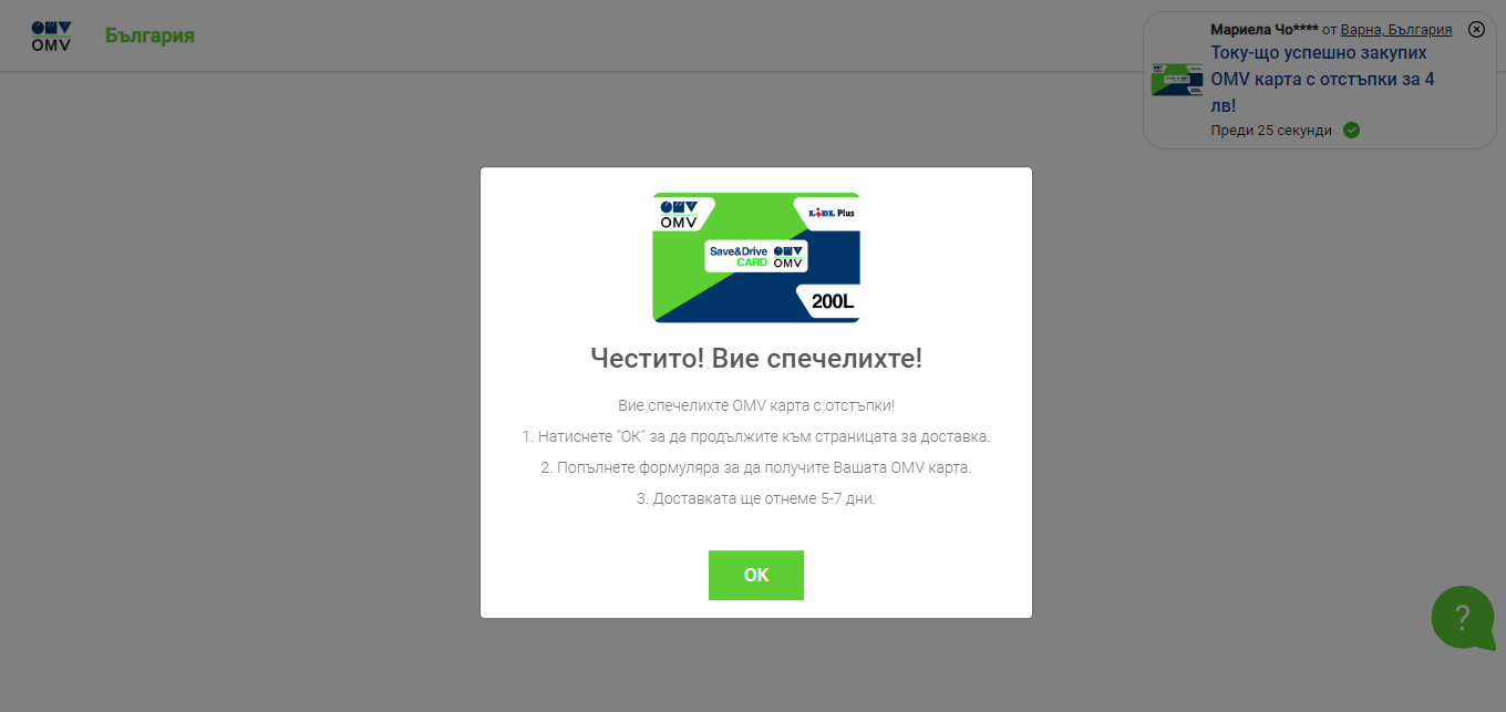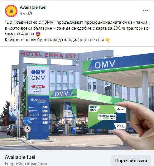 Естествено 90% от хората към момента не подозират нищо и цъкат на страницата, с цел да съберат повече информация за акцията, която ни оферират две огромни вериги на българския пазар – Лидл и ОМВ. Мислим си „ за какво не?”, това са огромни вериги и могат да си разрешат да „ ухажват” клиентите си с сходни промоции. Естествено се зачитаме в изявленията, виждаме голям брой мнения от действителни хора, по какъв начин си чакат картата за 200 литра гориво. Виждаме и към този момент удовлетворени клиенти, които демонстрират фотоси на получената карта. Те обаче се оказват подправени профили, направени наскоро.
