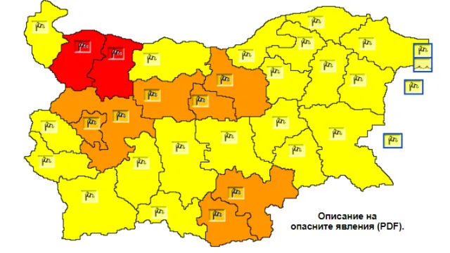 За седем области е в действие оранжев код – София, София-област, Ловеч, Габрово, Велико Търново, Кърджали и Хасково . За останалите области кодът е жълт.