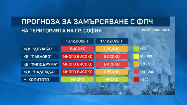 Предупреждения за замърсен въздух през днешния ден в София. От Национален институт по метеорология и хидрология предвидиха извънредно висока централизация на Очакванията са за в кварталите „ Дружба “, „ Надежда “, „ Хиподрума “ и „ Павлово “. Верни ли са прогнозите?