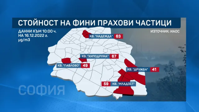 Според Столична община тези прогнози не са се сбъднали. Към 10 ч., измерващи равнищата на замърсяване, демонстрираха леки превишения в кварталите „ Надежда “, „ Хиподрума “ и „ Младост “.