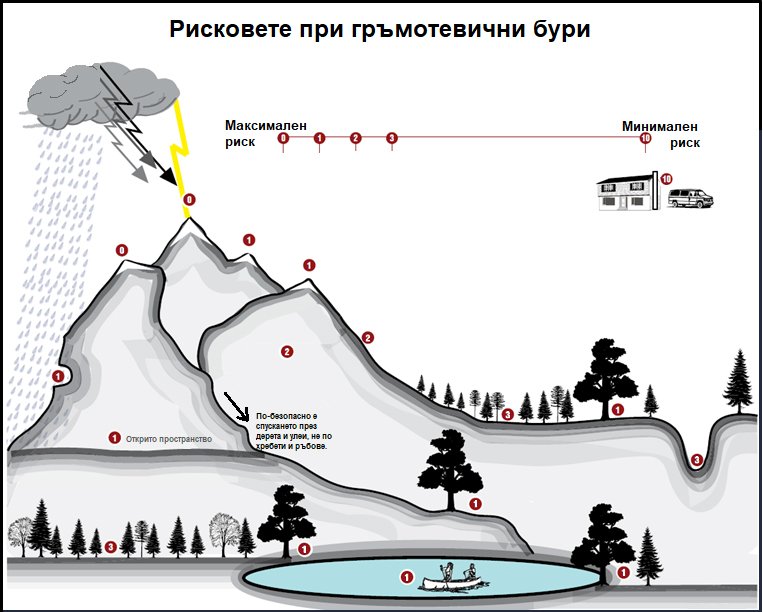 Ако се намирате измежду природата по време на гръмотевична стихия, постарайте се да застанете надалеч от високи дървета. При съществуване на изсъхнал предмет, седнете върху него.