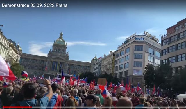 Протест в Прага на 03.09.2022. Цитат от видеото Demonstrace 03.09.2022 Praha.