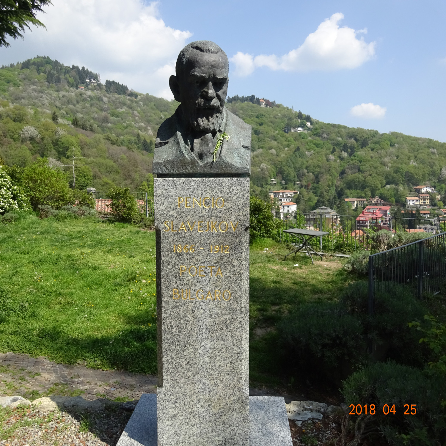 Влакчето стопира и гостите са към този момент в градчето, което съпоставят с небесния парадайс. В него живеят 1769 поданици. Гостите са стотици хиляди на година. Най-видимата постройка в Брунате е библиотеката. Тя е на самия връх. Пред нея има просторен двор, а в центъра му монумент на мъж с брада, леко привел лице, забил взор пред себе си За чужденците този бронзов бюст може и да не приказва нищо, само че всяко българско сърце трепва, щом го види. Под него надписът е на италиански: „ Пенчо Славейков-български стихотворец. ”