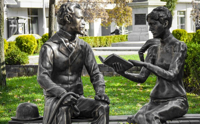 Много по-тъжно звучи идващото изречение, издълбано върху бяла плоча, инсталирана върху старинната постройка насреща: