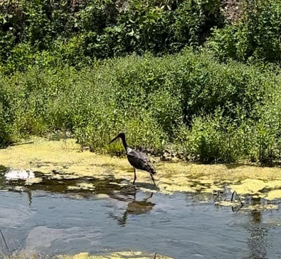 Пернатият посетител изследвал какво предлага за ядене водоема, а появяването му не остава незабелязана. Черният хубавец е сниман, а фрагментите с изисканата му външност се озовават във Фейсбук.