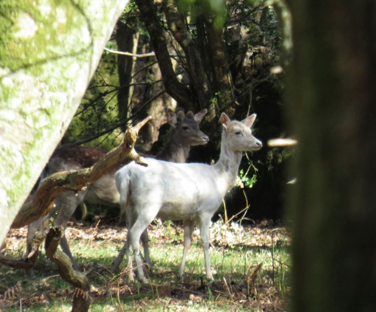 За рядката среща споделя Марин Дандаров в обществените мрежи. Той популяризира и кадър, на който се вижда животното, което умерено преглежда гората, съпроводено от други кошути, които обаче са с нормалната си багра.