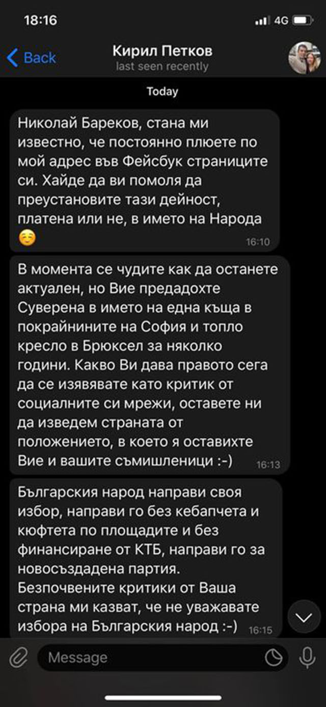 Бареков пусна предполагаема кореспонденция от Кирил Петков