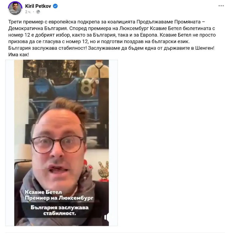 Премиерът на Люксембург поддържа Кирил Петков в предизборната акция. Затова се похвали самият съпредседател на Политическа партия в обществените мрежи. „ Трети министър председател с европейска поддръжка “, посочи Петков. Само преди дни министър председателят на Белгия съобщи „ невиждана “ поддръжка за обединението на ПП-ДБ, само че и на Движение за права и свободи.