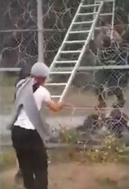По някое време даже я дърпат и има заплаха граничарят да падне. Накрая наглите преселници си отнасят стълбата, с цел да могат да я употребяват за следващ опит за нелегално минаване на границата.