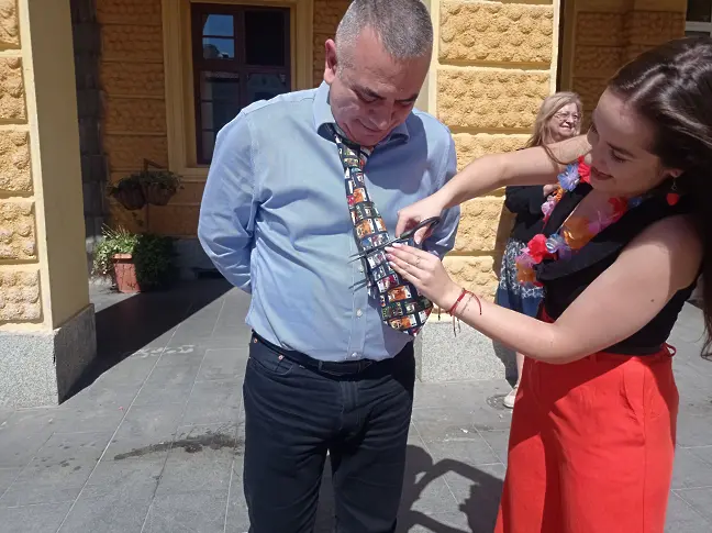 Възпитаниците на учебното заведение подариха десетки усмивки на инцидентните минувачи. Те изненадаха и кмета Стефан Радев, който слезе при тях, с цел да ги поздрави за прелестната самодейност. Оказва се, че на този празник, дамите режат вратовръзките на мъжете, с цел да им покажат своята „ нежна мощ “. И по този мотив една от ученичките на гимназията отряза вратовръзката на кмета.