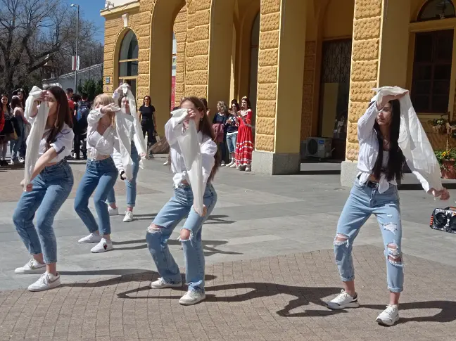 Преоблечени с пъстри облекла, с маски и цветни перуки, учениците на Профилираната гимназия с преподаване на западни езици „ Захарий Стоянов “ проведоха карнавално шествие по Главната улица на Сливен. Повод за необичайния празник е настъпилата пролет, с която посрещат топлите дни и положителното въодушевление.