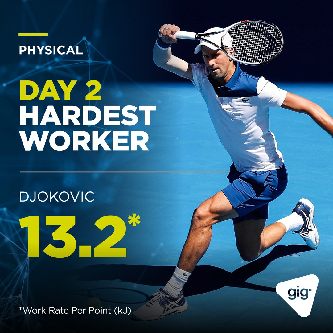 Пресслужбата на Australian Open продължава да се пробва по всякакъв начин да прикове интереса на почитателите на тениса с любопитни обстоятелства от мачовете по кортовете в Мелбърн. Оказва се, че Мария Шарапова и Новак Джокович са работили най-вече за успехите си в първи кръг, тъй като имат най-голям коефициент на изразходена сила приблизително на извоювана точка.