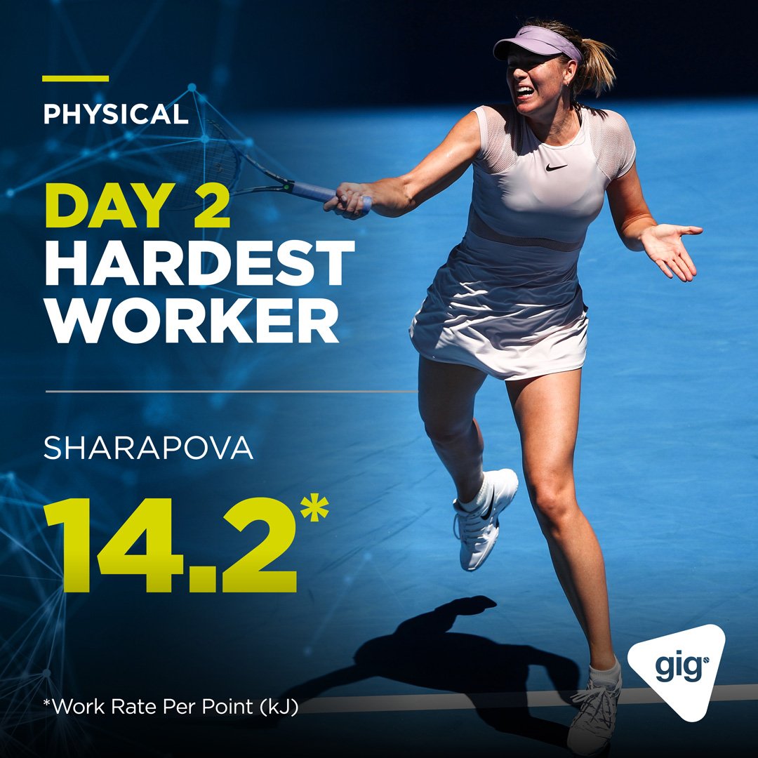 Мария Шарапова е изразходила 14.2 килоджаула, което, да вземем за пример, е съвсем два пъти повече от индикатора на Светлана Кузнецова. Новак Джокович пък е изразходвал по 13.2 килоджаула приблизително на извоювана точка и е водач измежду мъжете.