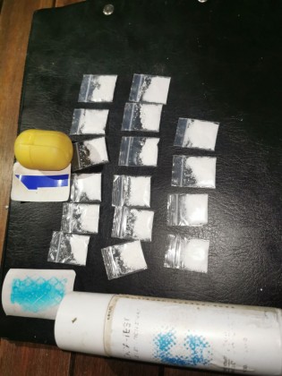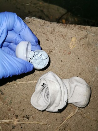 Намерени и конфискувани са: 16 найлонови пликчета с кокаин, марихуана, екстази, укрити в тайник на плажа.
