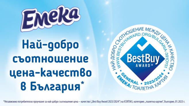 Престижната интернационална премия, определяща артикули с най-хубаво съответствие сред цена и качество - Best Buy Award 2023/2024, бе връчена на един от най-популярните марки тоалетна хартия в България – Емека .