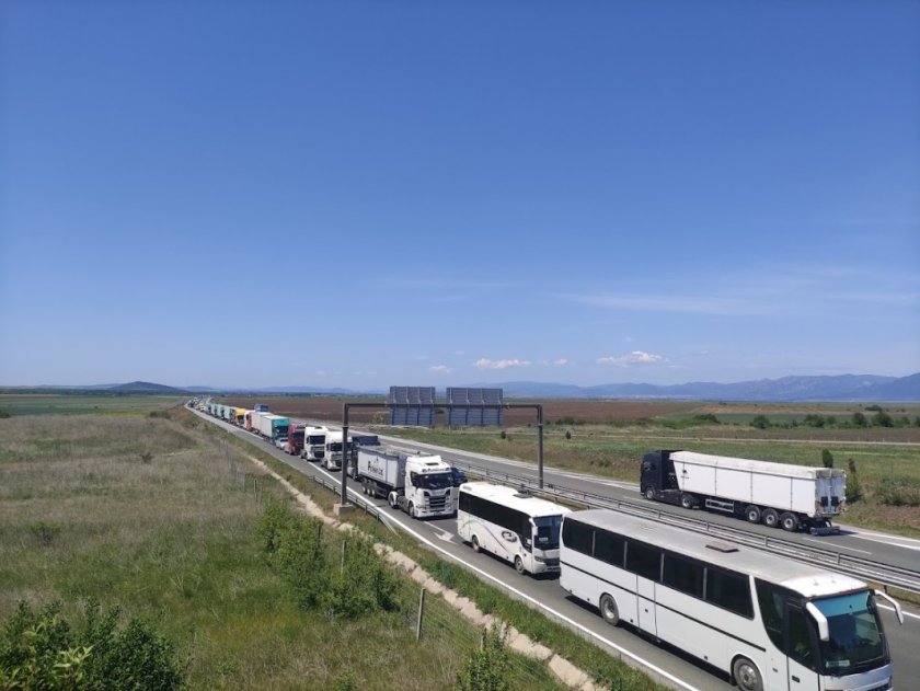 Десетки камиони и рейсове затрудниха придвижването по основния път Е-79 сред Благоевград и Симитли.