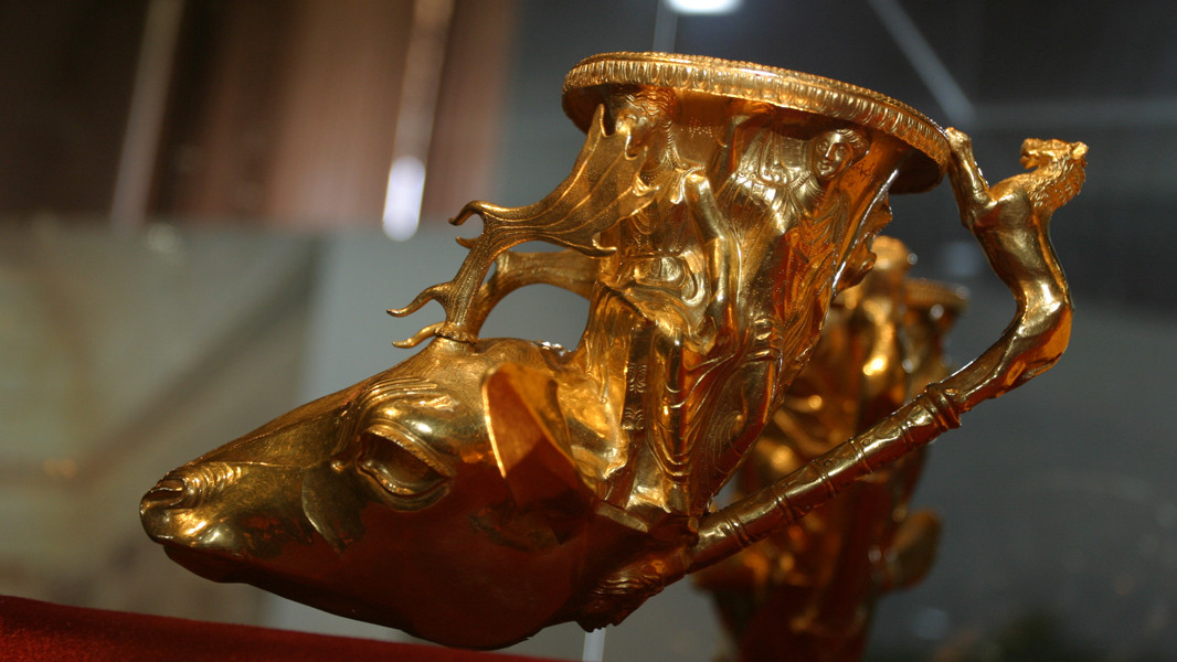 Състои се от 9 златни предмета – една фигона и осем ритона. Подобни съдове от доблестен метал са знаци на обществен статут и са употребявани при ритуални дейности на тракийските жреци. Представянето на богове и герои, на глави с негроидни черти, свещени животни и митологични същества през античността има ритуална функционалност – те би трябвало да пречистят течността и да пазят участващите в ритуала.