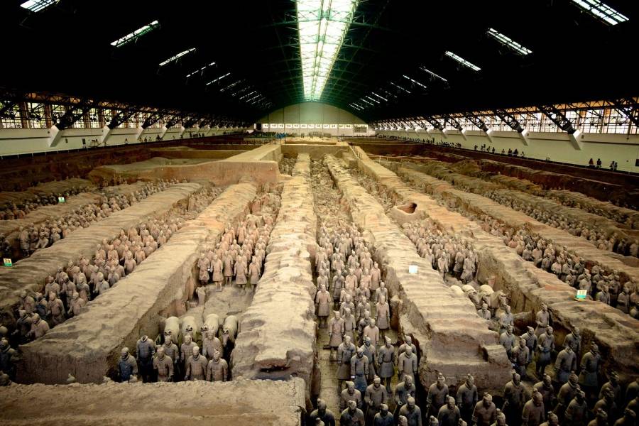 " Теракотената войска ", която е формирана от фигури в човешки размер на воини, коне, колесници, акробати, велможи, птици и всевъзможни оръжия, е наричана от мнозина " Осмото знамение на света " . Мавзолеят, който съдържа този неповторим артефакт, е открит през 1974 година и към момента е обект на проучвания, което не е чудно, поради обстоятелството, че е съвсем с размерите на Манхатън.