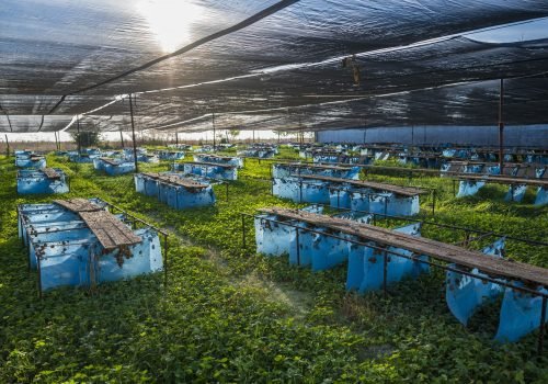 Във фермата " Еко-Телус " охлювите се отглеждат по френския модел, който е цялостна система - т.е., на територията на самата плантация са построени и зала за репродукция, и развъдник, в който се излюпват дребните.