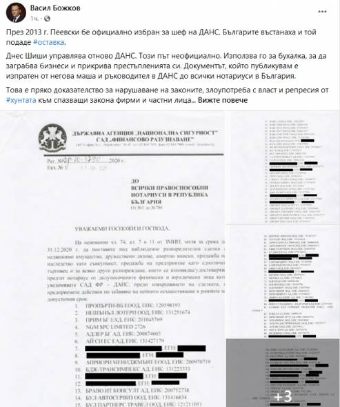 Документът, който обявявам е изпратен от негова маша и началник в ДАНС до всички нотариуси в България, в обществената мрежа фейсбук.