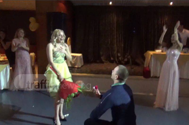 Започваме с един пловдивчанин, който изненада обичаната си с неповторимо предложение за брак по време на абсолвентската й вечер. Пред погледа на сътрудниците и преподавателите си красивата Валерия не се поколеба и сподели „ Да” на Георги!
