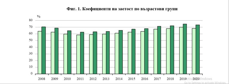 През 2020 година 72.2% от популацията са в стопански дейна възраст (15-64 г.), демонстрират данните на Национален статистически институт. Това са 3 190.4 хиляди души. Общият брой на заетите e 3, 121.7 млн., или 52.7% от популацията на 15 и повече навършени години, като от тях 1 676.1 хиляди (53.7%) са мъже и 1 445.6 хиляди (46.3%) - дами. Останалите данни от статистиката демонстрират, че работещите на възраст 15 - 64 навършени години са 3, 024.3 млн. Коефициентът на претовареност за популацията в същата възрастова група е 68.5%, надлежно 72.5% за мъжете и 64.3% за дамите.