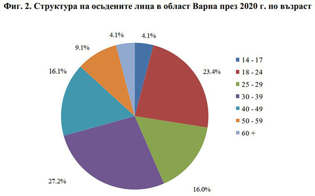 Броят на наказаните лица с влезнали в действие присъди в област Варна през 2020 година е 1 134. От тях 46 (4.1%) са малолетни.