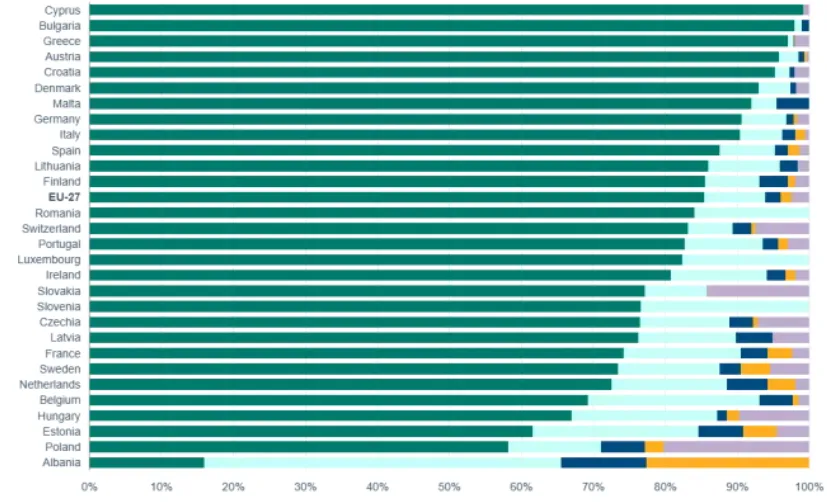 В пет страни — Кипър, следван от България, Гърция, Австрия и Хърватия — 95% или повече от водите за къпане са били с чудесно качество. В България, следвана от Малта, Люксембург, Румъния и Словения, всички води за къпане са били с най-малко „ приемливо “ качество през 2024 година