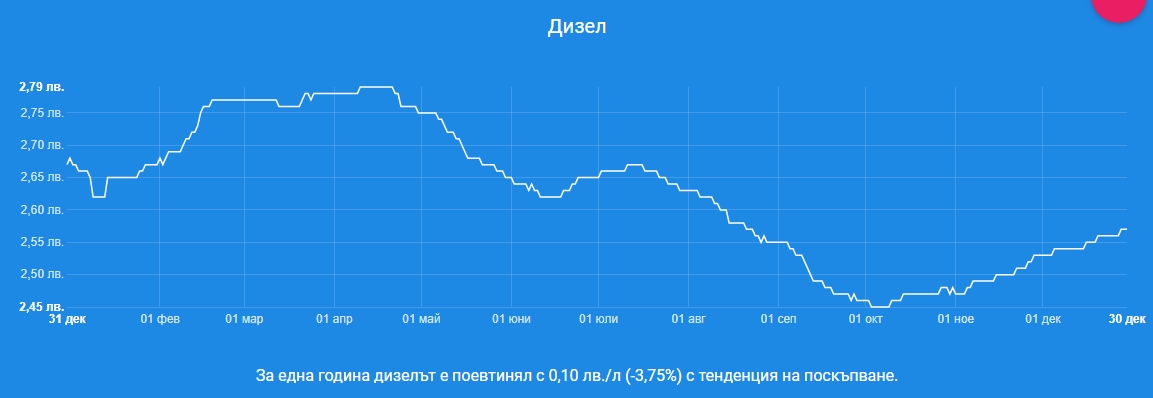 Сравнено със същия интервал през 2023 година, бензинът и дизелът нарастнаха с към 10%, само че доста по-нисък беше растежът по отношение на лятото на 2024 година, когато горивата бяха с 15% по-скъпи от есента. През вторите шест месеца на година цените се намалиха, като в края на годината цифрите са с към 2-3 % по-ниски, в съпоставения със същия интервал през миналата година. Поскъпване, въпреки и минимално се следи есинствено при пропан-бутана.