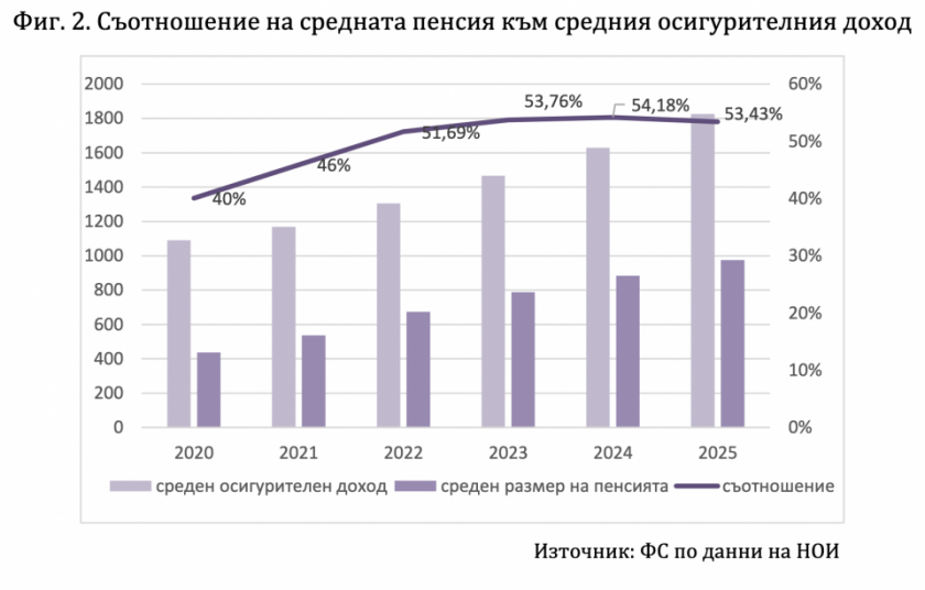 През 2025 година пенсиите ще заместват 53,6% от брутния приход, а чистият коефициент на заменяне - съотношението на пенсията към чистия приход, се чака да доближи 69%. Тези данни са оповестени в претекстовете към бюджета на държавното публично обезпечаване за тази година и мнението на Фискалния съвет по законопроекта.