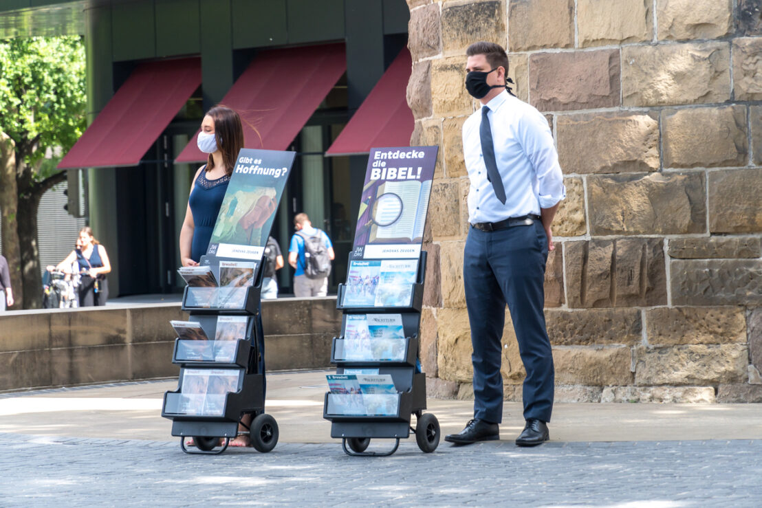 Heilbronn, Germany – July 10, 2020: Jehovah’s Witnesses standing next to their books and pamphlets wearing medical protective masks Официално в тази фракция има към 8.5 милиона почитатели, само че и до този миг НПО-то продължава да отхвърля да показа данните. Още по-притеснителното е, че даже и след заплащането на милиони долари като санкции за отвод да спомага на управляващите, архивът продължава да се крие точно там. И всеки опит стартира с идването на юристите на Кулата, които стартират да цитират законите за персонални данни и тяхната цялост. Близо 20 години няма отговор по тази тематика, само че скоро идват и пробивите в системата.