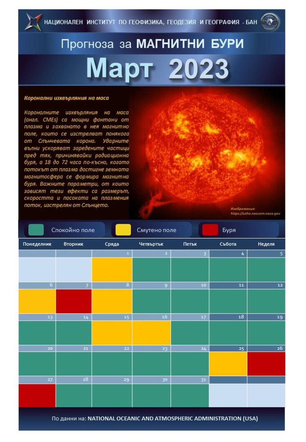 През март месец се чака да се срещнем с три дейни района , които могат да причинят разстройства и магнитни стихии , оповестяват от Националния институт по геофизика, геодезия и география към Българска академия на науките.