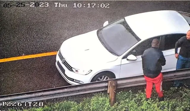 Разпространените два фрагмента наподобяват като извадени от записи на видеонаблюдение. В единия от тях се вижда негър мъж, облечен в яркочервени панталони, бяла блуза и черно яке. Той стои навъсен пред бяла кола, отбита до мантинела. В дясната си ръка стиска нещо.