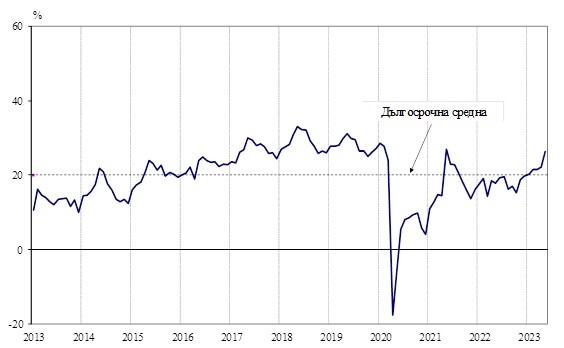 През май 2023 г. общият показател на бизнес климата у нас се покачва с 4,0 пункта