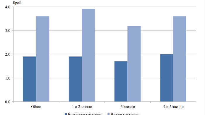 Хотелите с 4 и 5 звезди са желани от 60.5% от българските жители, като междинният брой осъществени нощувки в тях е 2.0.
