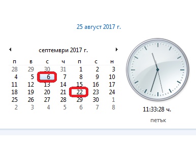 Официални почивни дни за СЕПТЕМВРИ 2017