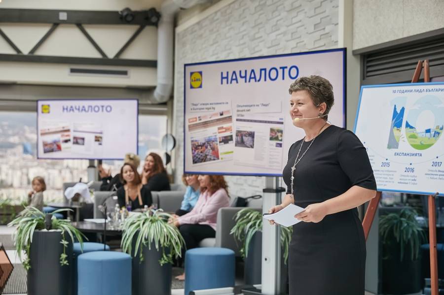 На особено събитие за медии Милена Драгийска, основен изпълнителен шеф на Лидл България, благодари персонално на представителите на българските медии за поддръжката и показа главните достижения на компанията през тези 10 години, като изясни какво стои зад сполучливото наличие на веригата в страната.