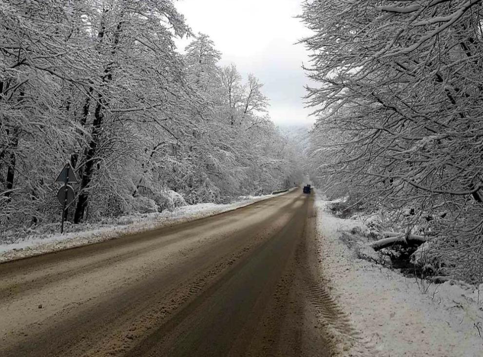 Обработката на настилките продължава. Сняг вали в региона на Смолян и в Северозападна България. В област Смолян е лимитирано придвижването на моторни транспортни средства с ремаркета и полуремаркета.