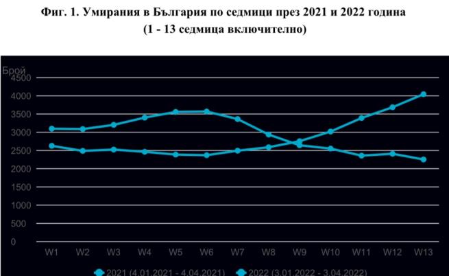 Най-висока смъртност през първото тримесечие на 2022 година е записана през 6-ата седмица от 7 до 13 февруари. Тогава са умряли 3 569 души.