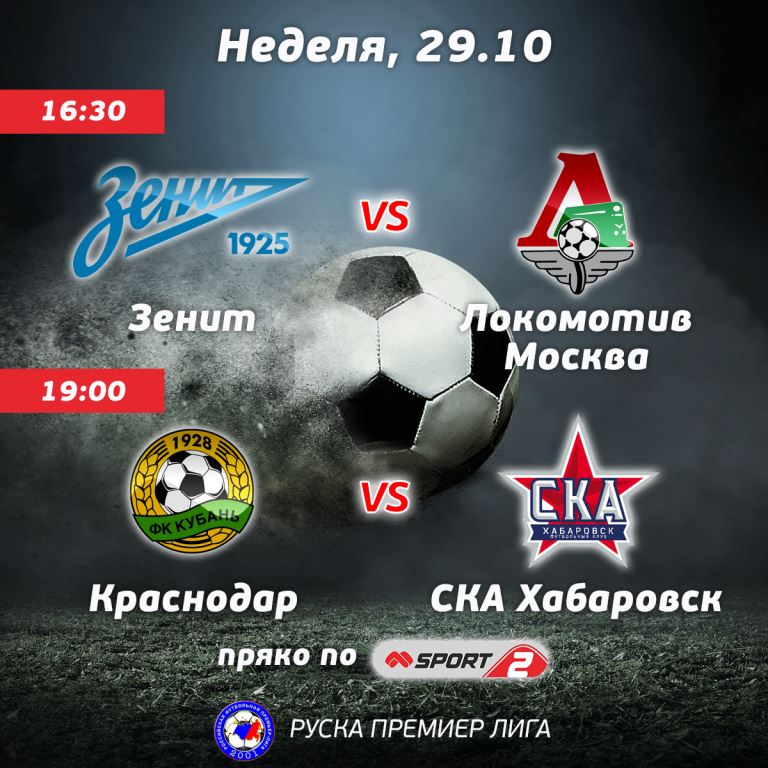 В събота от 19:00 часа по Mtel Sport 2 първенецът Спартак Москва с Ивелин Попов в състава си гостува на Ростов. В неделя от 16:30 часа, още веднъж по Mtel Sport 2, е огромното дерби на съветската Премиер лига сред Зенит и Локомотив Москва. Двата тима си поделят първото място във краткотрайното класиране с по 29 точки и дуелът в Санкт Петербург ще покаже кой ще излезе напред в битката за купата. Кръгът в Русия се затваря с мача Краснодар - СКА Хабаровск, още веднъж по Mtel Sport 2, в неделя от 19:00 часа.