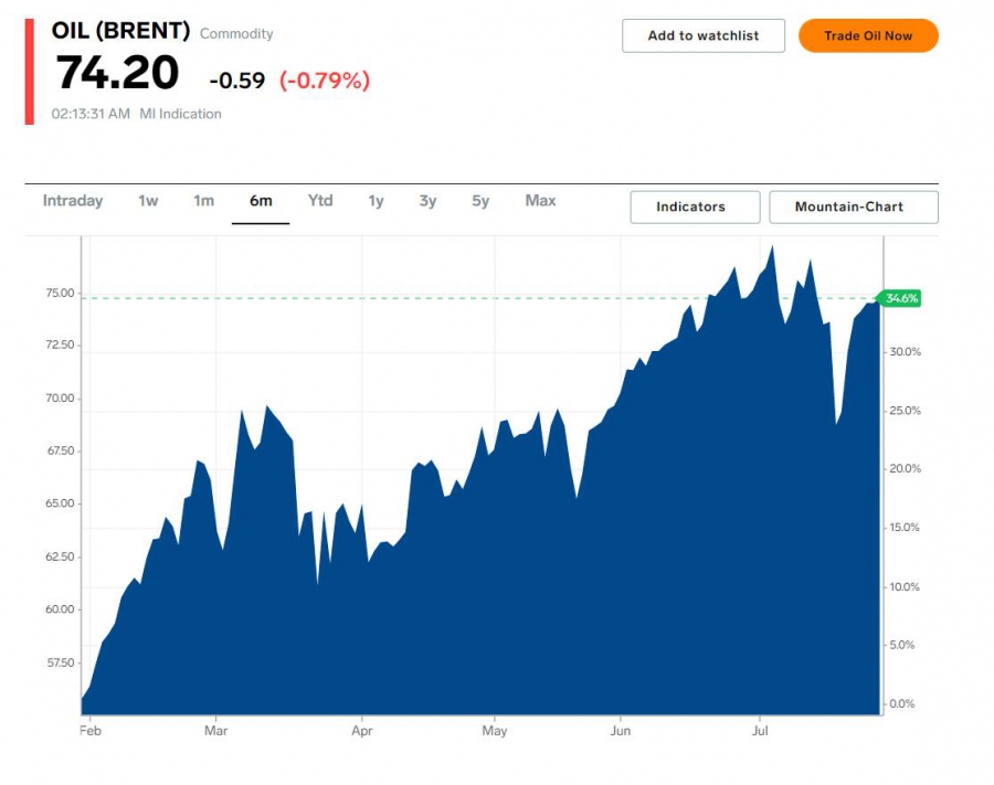 " През последната седмица цената на сорта „ Брент “ се задържа стабилно на равнища сред 73-75 $ за барел. Въпреки следващото реализирано тактическо „ помирение “ сред страните в ОПЕК, има по-силни пазарни сигнали, които държат цените високи. Най-силния от тях е възобновяване на стопанската активност в целия свят ", написа анализаторът Борислав Боев във Facebook.