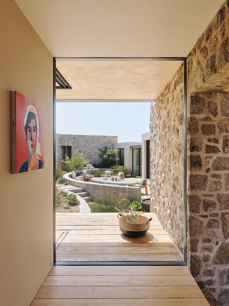 Вземайки ентусиазъм от околния пейзаж и духа на мястото, архитектурното студио Schicketanz, благосъстоятелност на Мери Ан Шикетанц, проектира спиращ дъха резистентен дом, който безусловно се слива с пейзажа и обезпечава самостоятелност на обитаването на всякакво равнище. Използвани са локален гранит от Калифорния, специфична устойчива мазилка за четирите „ куба “, сложени пред скалните стени и вписани неутрално в пейзажа, както и естествени локални материали за построяването на подпорната стена, издълбана в ската, с цел да пази обекта от мощните планински ветрове. Всичко е решено в неутрална палитра, подчинена на концепцията за „ пещера “ в планината.